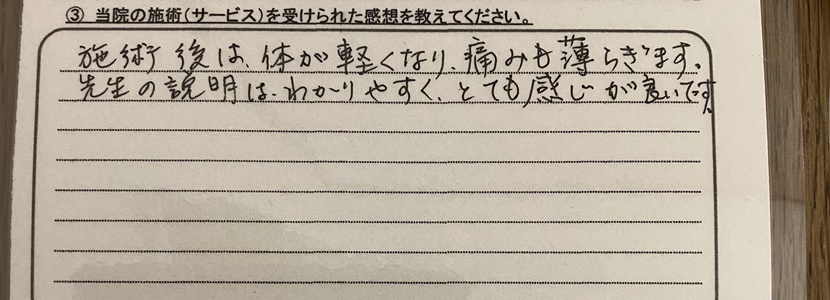 腰痛でお悩みの方からいただいた、施術の感想です。